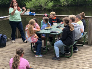 Leslie Middle School Reaching Higher students learn how to assess water chemistry at Baldwin Park, Onondaga